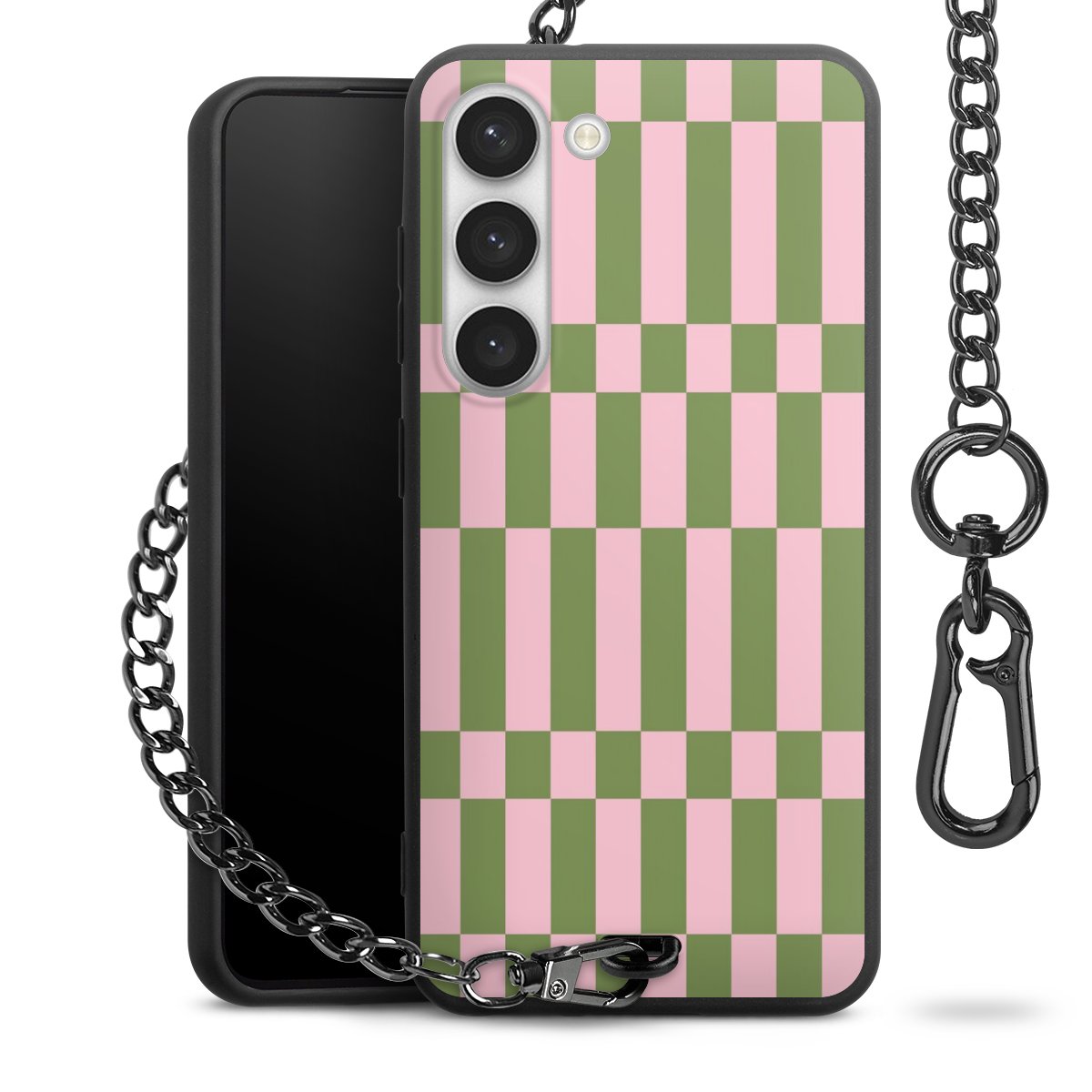 • Mattschwarze Handyhülle mit Metallkette