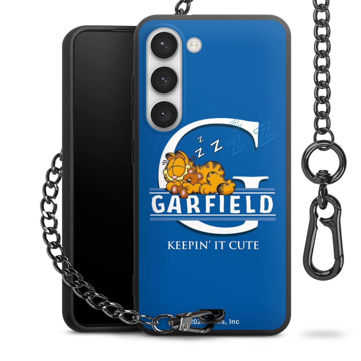 - Mattschwarze Handyhülle mit Metallkette