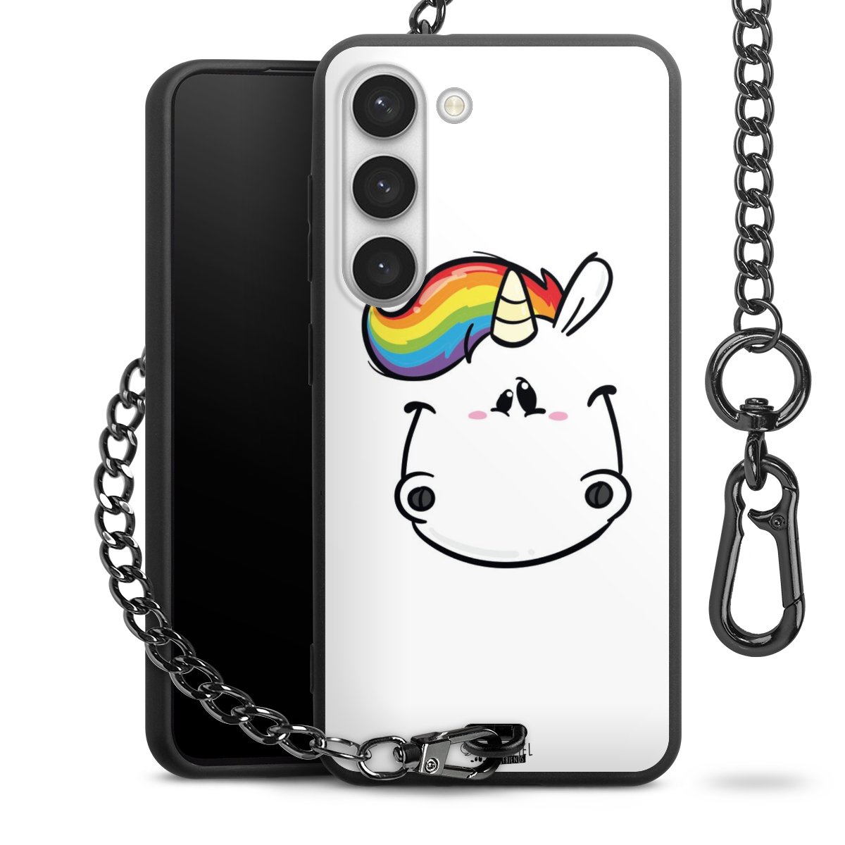Die mattschwarze Silikon-Handyhülle besteht aus robustem TPU (thermoplastisches Polyurethan). Sie ist flexibel und schützt Dein Smartphone vor Stößen und Kratzern. Die Kette sowie der Karabinerhaken sind aus Metall in Gunmetal-Optik gefertigt. Für dieses Produkt kommen ausschließlich TÜV-geprüfte Materialien zum Einsatz.