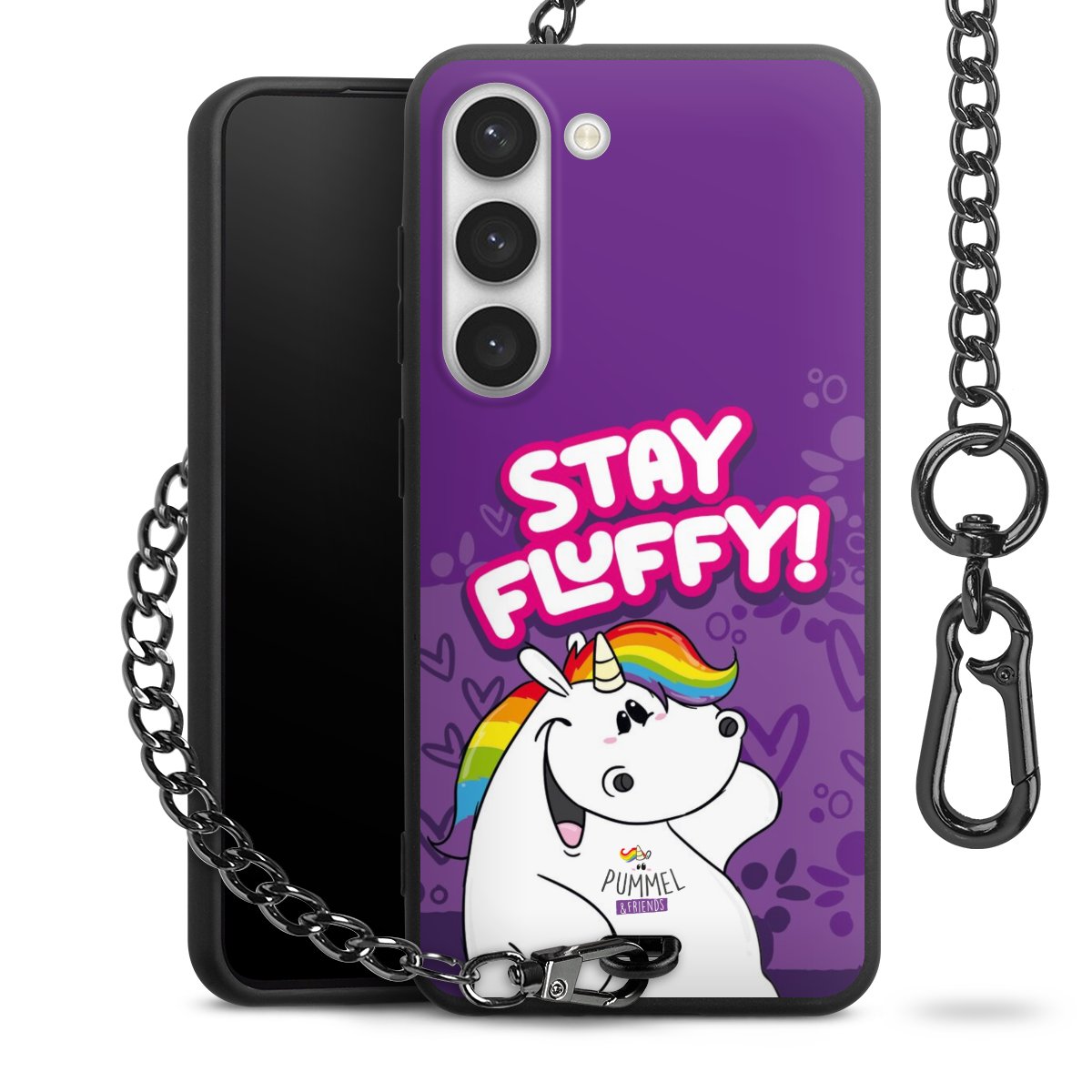 Die mattschwarze Silikon-Handyhülle besteht aus robustem TPU (thermoplastisches Polyurethan). Sie ist flexibel und schützt Dein Smartphone vor Stößen und Kratzern. Die Kette sowie der Karabinerhaken sind aus Metall in Gunmetal-Optik gefertigt. Für dieses Produkt kommen ausschließlich TÜV-geprüfte Materialien zum Einsatz.