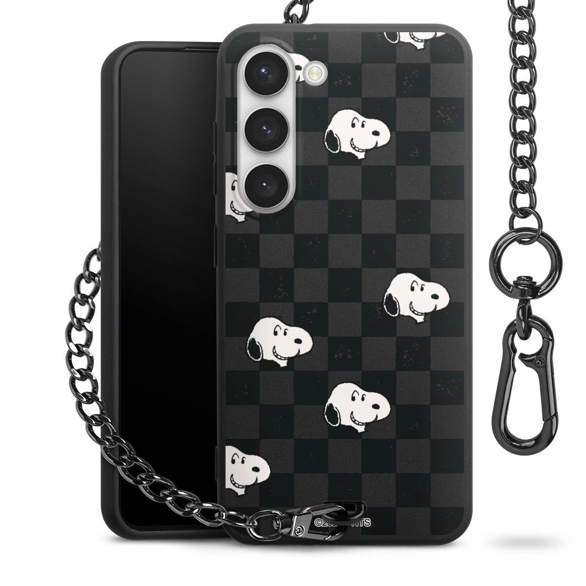 • Mattschwarze Handyhülle mit Metallkette