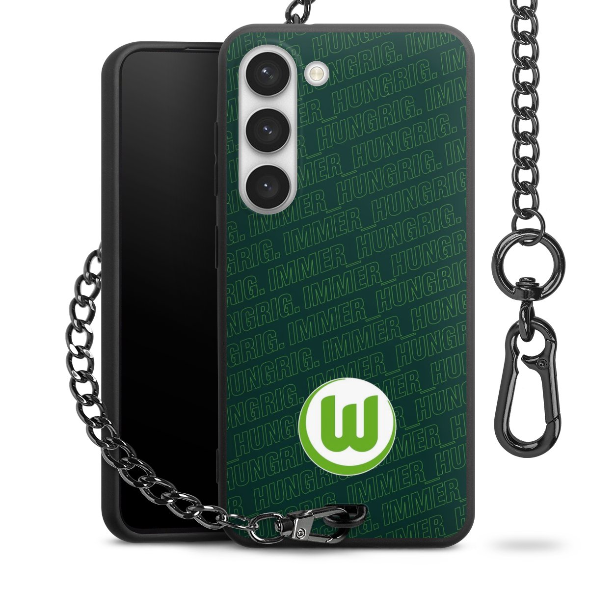 Die mattschwarze Silikon-Handyhülle besteht aus robustem TPU (thermoplastisches Polyurethan). Sie ist flexibel und schützt Dein Smartphone vor Stößen und Kratzern. Die Kette sowie der Karabinerhaken sind aus Metall in Gunmetal-Optik gefertigt. Für dieses Produkt kommen ausschließlich TÜV-geprüfte Materialien zum Einsatz.