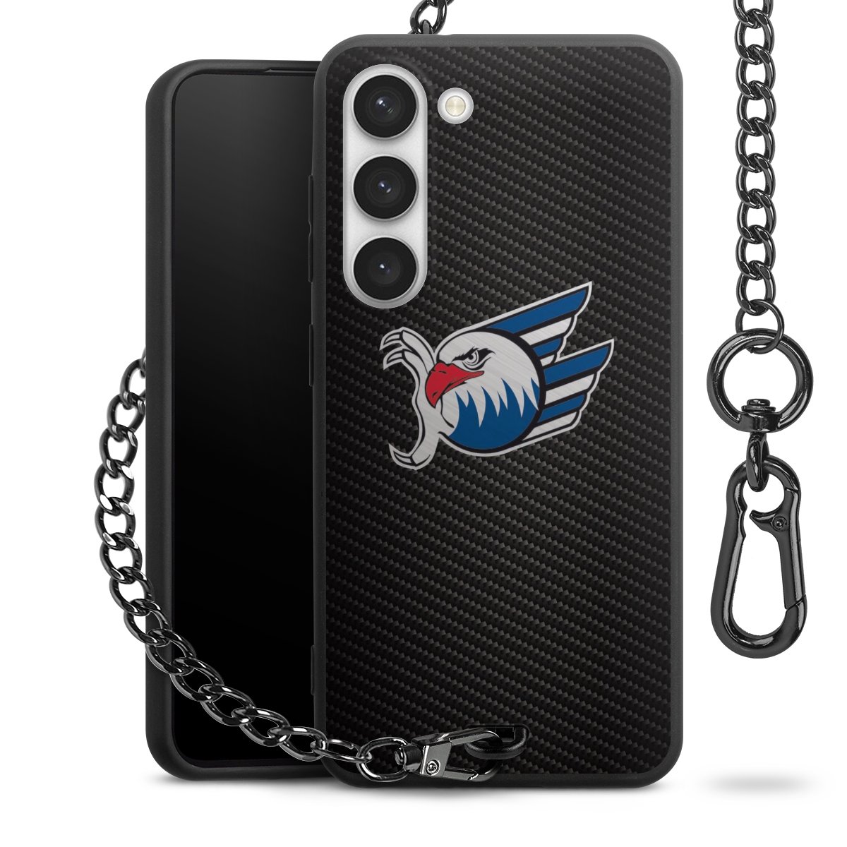 • Mattschwarze Handyhülle mit Metallkette