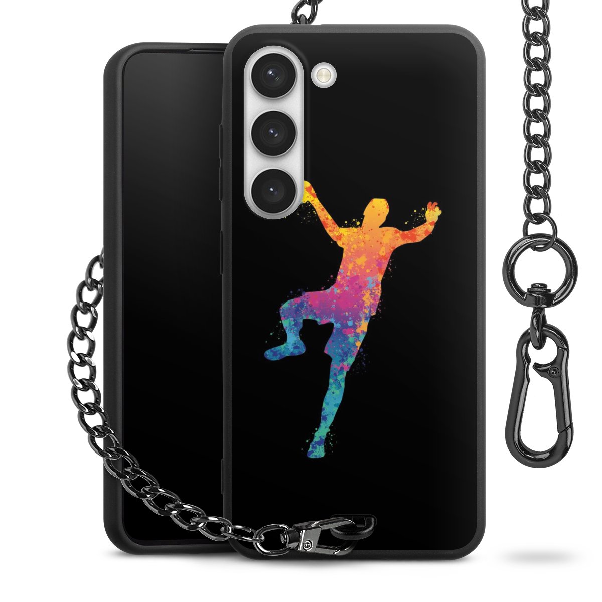- Mattschwarze Handyhülle mit Metallkette