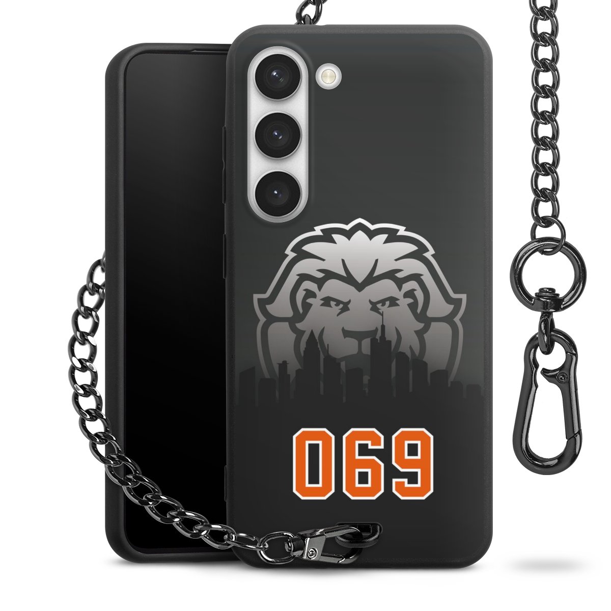 - Mattschwarze Handyhülle mit Metallkette