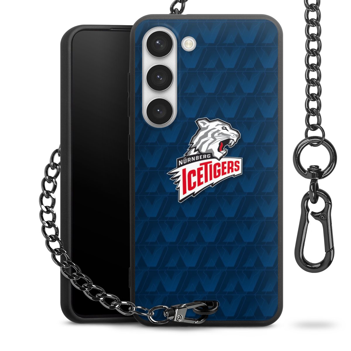 - Mattschwarze Handyhülle mit Metallkette