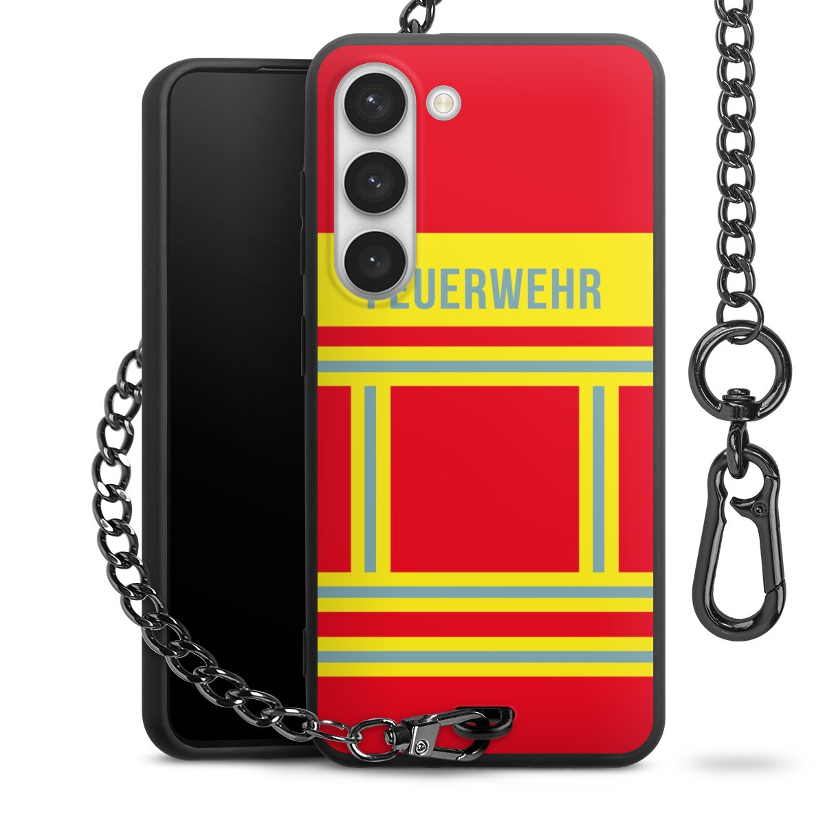 - Mattschwarze Handyhülle mit Metallkette