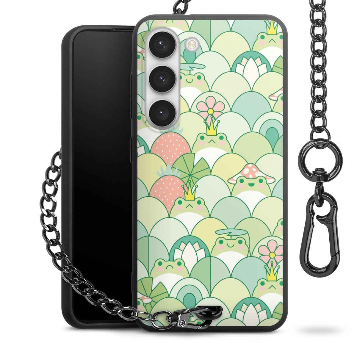 • Mattschwarze Handyhülle mit Metallkette