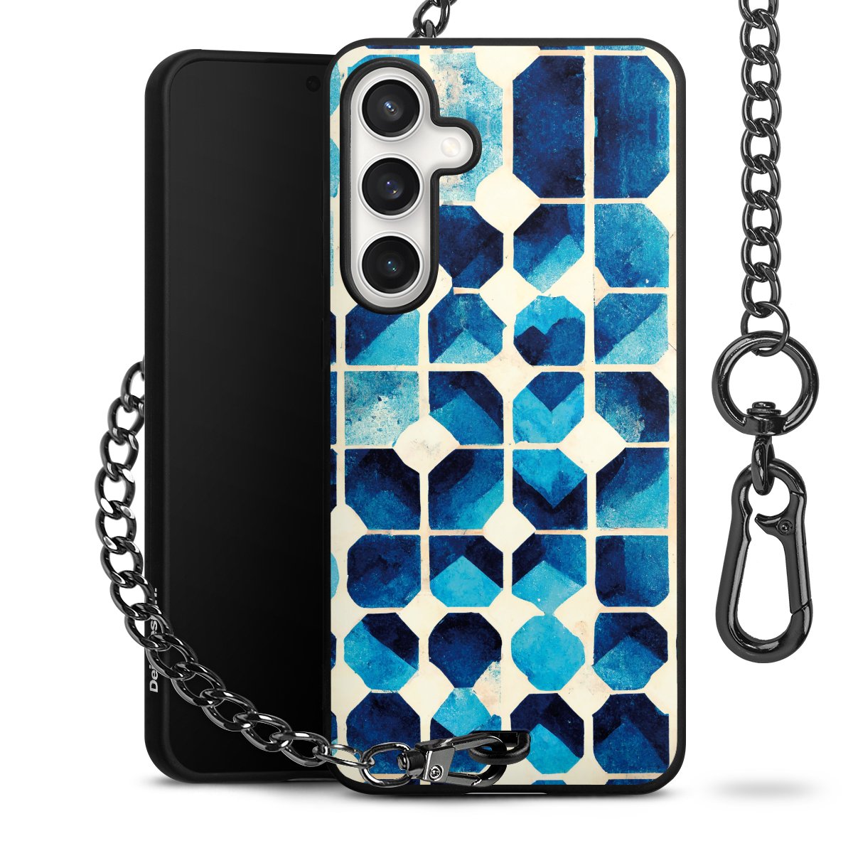 • Mattschwarze Handyhülle mit Metallkette