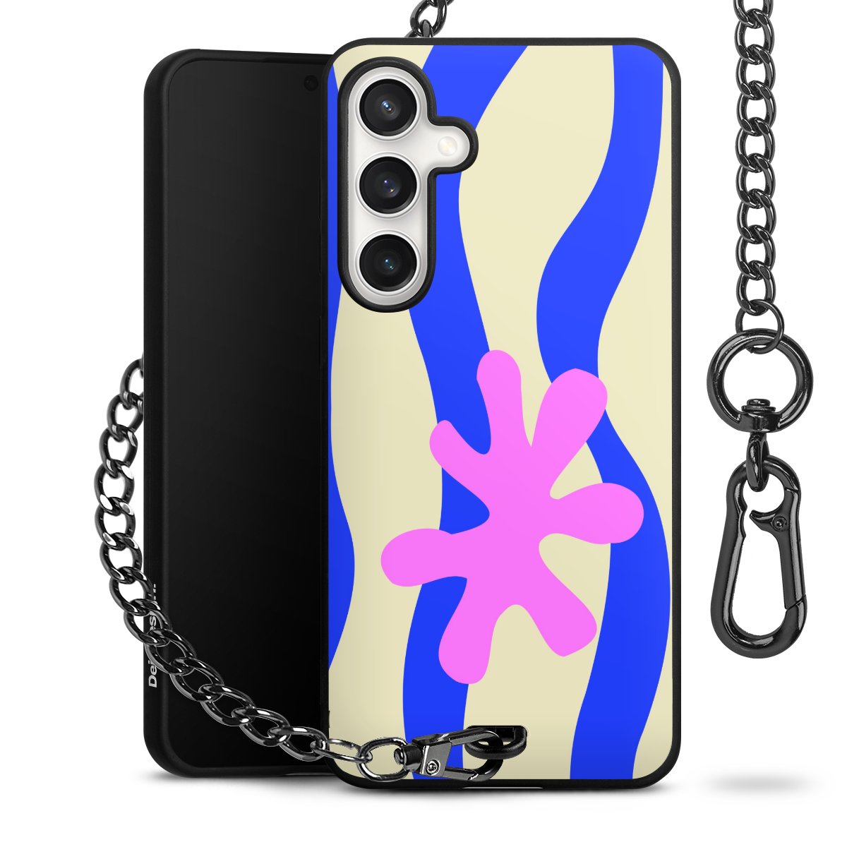 - Mattschwarze Handyhülle mit Metallkette
