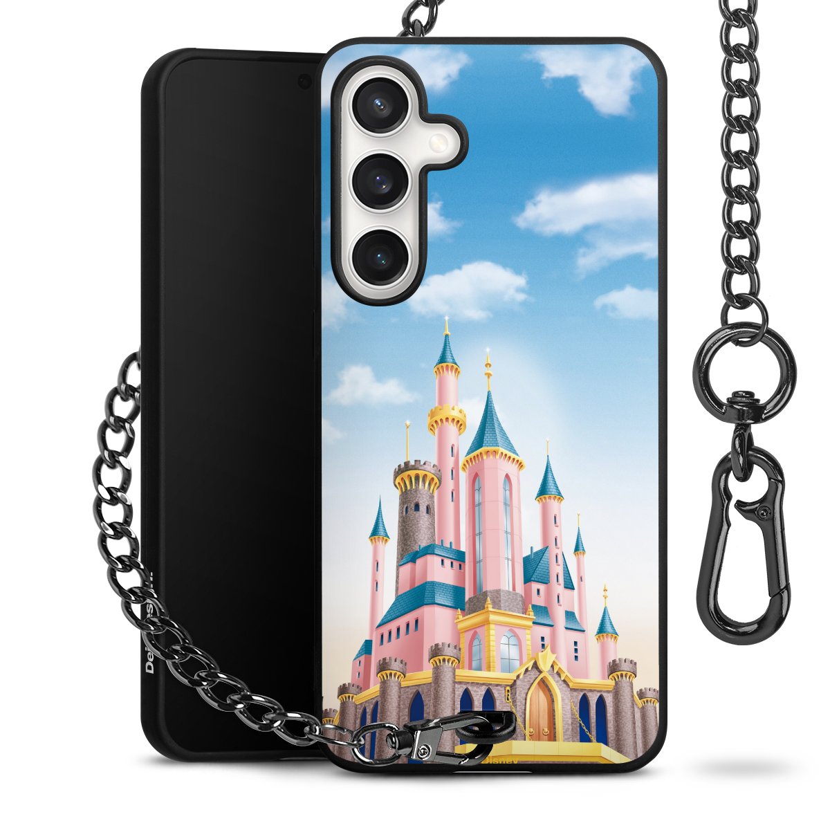 Die Handyhülle verfügt über eine mittig am unteren Rand platzierte Öse, an der die Metallkette stabil befestigt ist. Bestelle die Hülle einfach für Dein Smartphone-Modell, dann passt sie wie angegossen und Du brauchst sie bloß einmal anzudrücken. Handy in die Tasche, Karabiner an den Hosenbund – schon kann die Party starten.