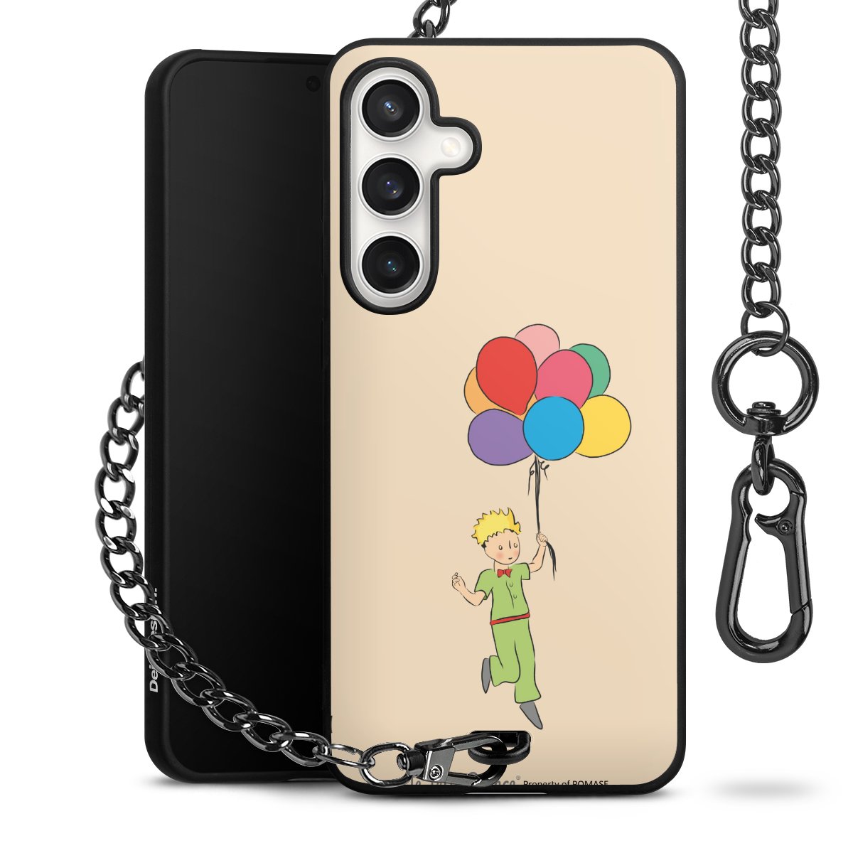 Die Handyhülle verfügt über eine mittig am unteren Rand platzierte Öse, an der die Metallkette stabil befestigt ist. Bestelle die Hülle einfach für Dein Smartphone-Modell, dann passt sie wie angegossen und Du brauchst sie bloß einmal anzudrücken. Handy in die Tasche, Karabiner an den Hosenbund – schon kann die Party starten.