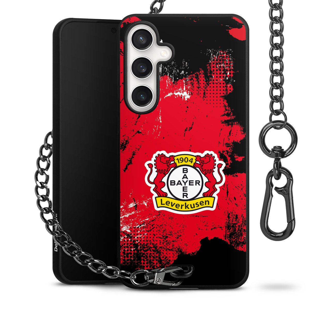 Die mattschwarze Silikon-Handyhülle besteht aus robustem TPU (thermoplastisches Polyurethan). Sie ist flexibel und schützt Dein Smartphone vor Stößen und Kratzern. Die Kette sowie der Karabinerhaken sind aus Metall in Gunmetal-Optik gefertigt. Für dieses Produkt kommen ausschließlich TÜV-geprüfte Materialien zum Einsatz.