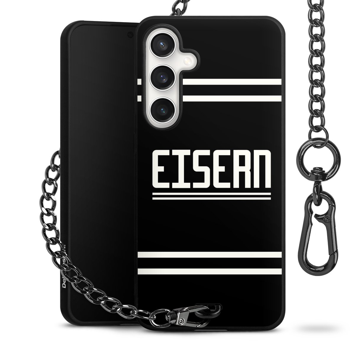 • Mattschwarze Handyhülle mit Metallkette