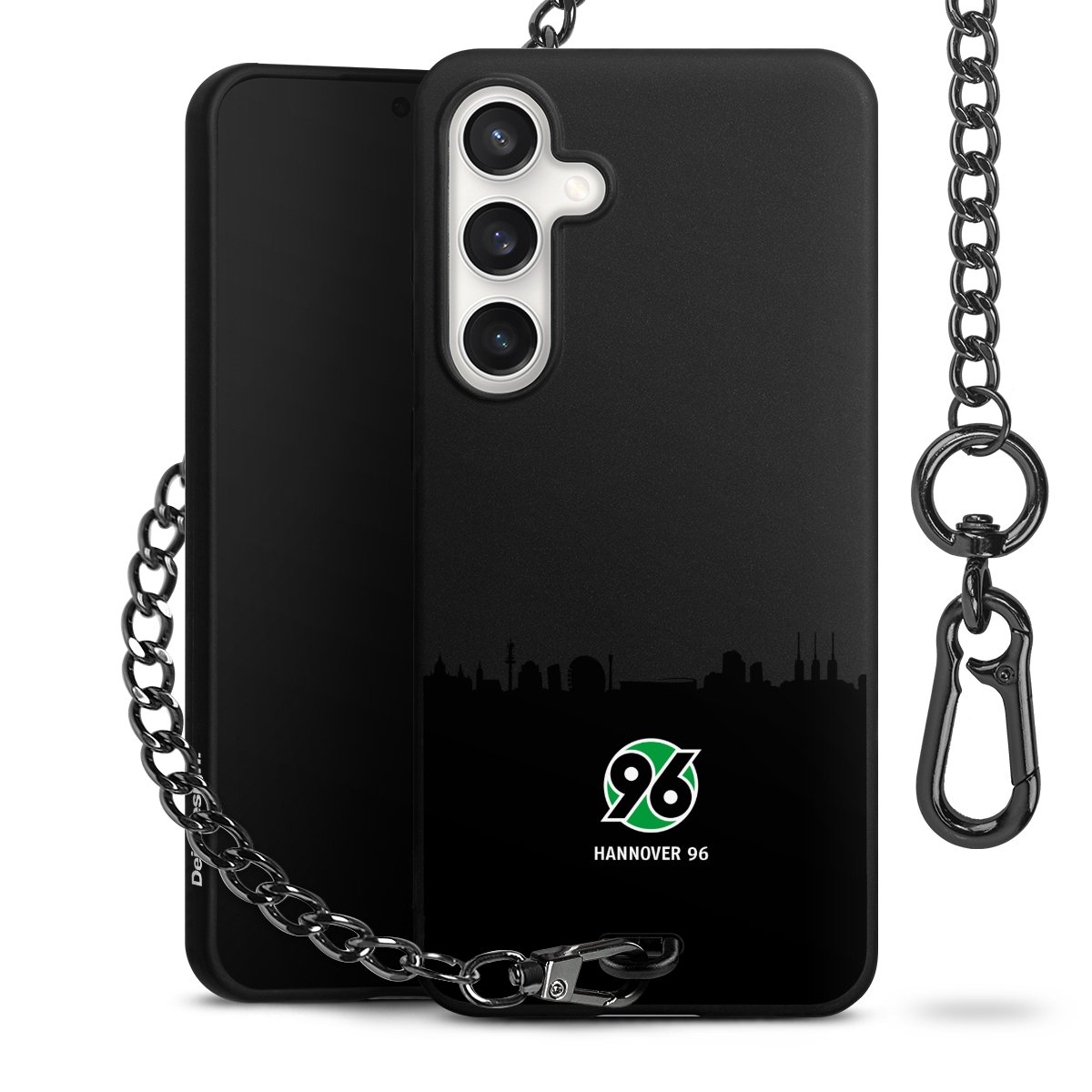 Die mattschwarze Silikon-Handyhülle besteht aus robustem TPU (thermoplastisches Polyurethan). Sie ist flexibel und schützt Dein Smartphone vor Stößen und Kratzern. Die Kette sowie der Karabinerhaken sind aus Metall in Gunmetal-Optik gefertigt. Für dieses Produkt kommen ausschließlich TÜV-geprüfte Materialien zum Einsatz.