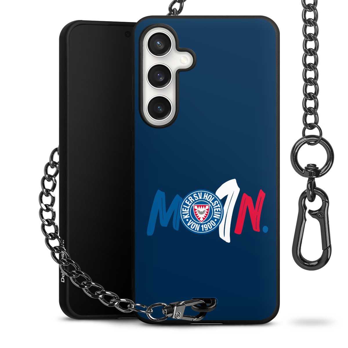 Die mattschwarze Silikon-Handyhülle besteht aus robustem TPU (thermoplastisches Polyurethan). Sie ist flexibel und schützt Dein Smartphone vor Stößen und Kratzern. Die Kette sowie der Karabinerhaken sind aus Metall in Gunmetal-Optik gefertigt. Für dieses Produkt kommen ausschließlich TÜV-geprüfte Materialien zum Einsatz.