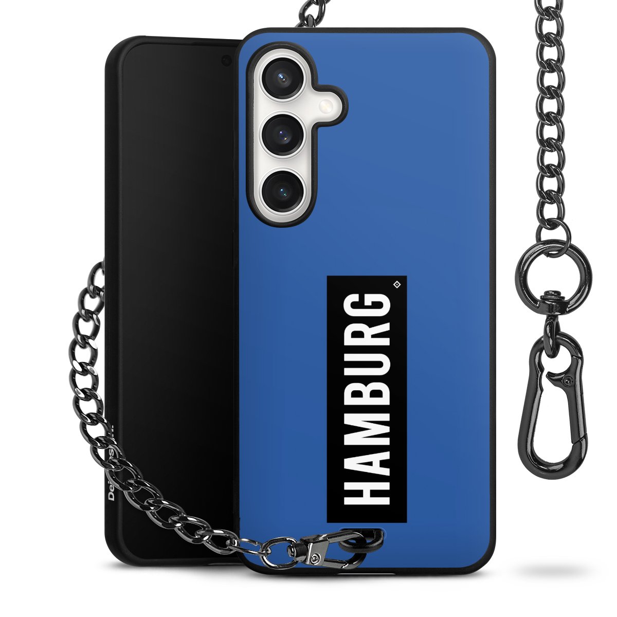 Die mattschwarze Silikon-Handyhülle besteht aus robustem TPU (thermoplastisches Polyurethan). Sie ist flexibel und schützt Dein Smartphone vor Stößen und Kratzern. Die Kette sowie der Karabinerhaken sind aus Metall in Gunmetal-Optik gefertigt. Für dieses Produkt kommen ausschließlich TÜV-geprüfte Materialien zum Einsatz.