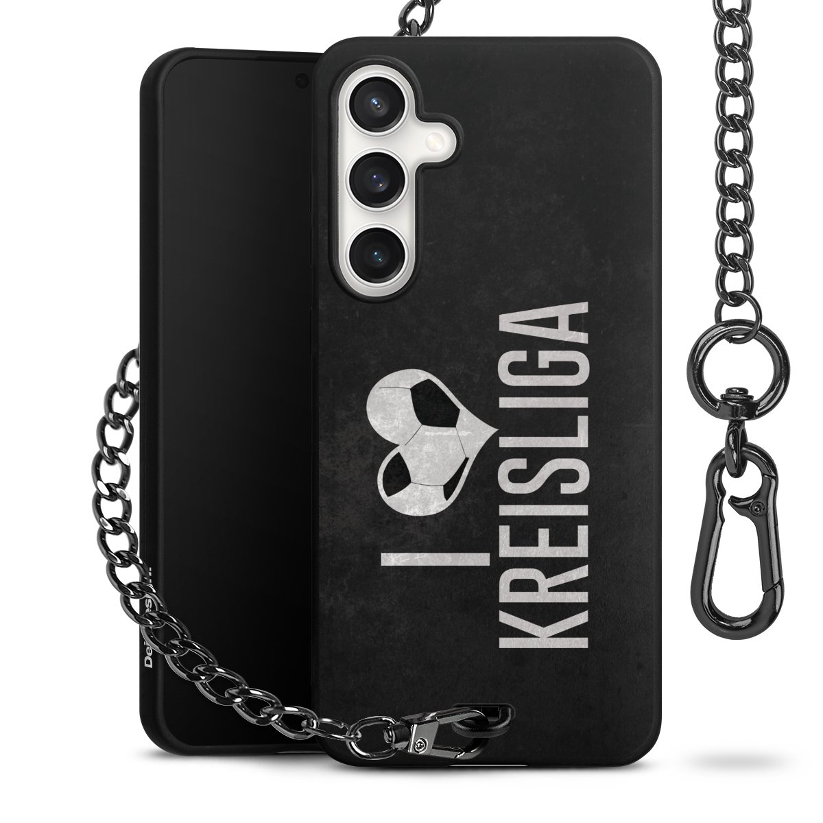 • Mattschwarze Handyhülle mit Metallkette