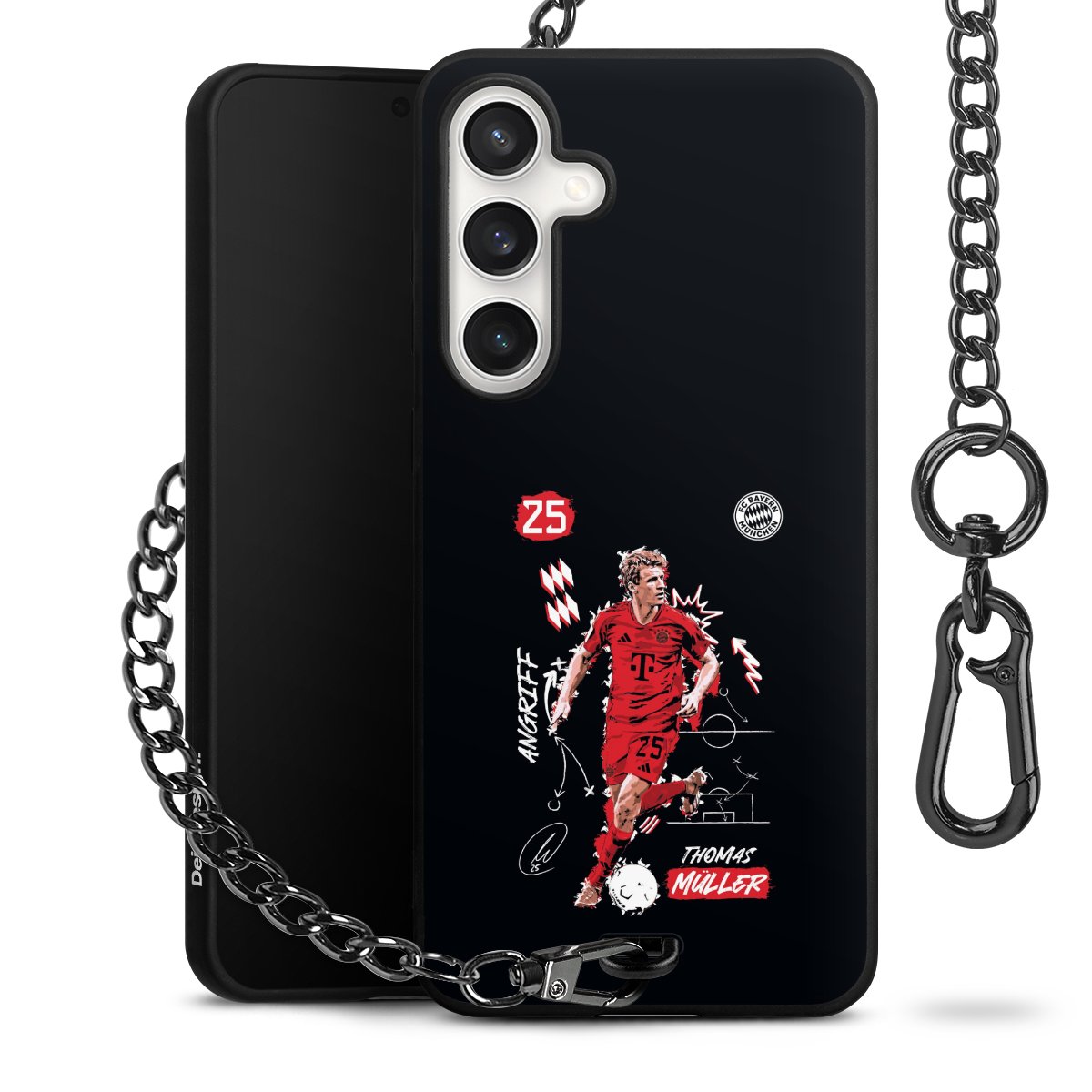 • Mattschwarze Handyhülle mit Metallkette