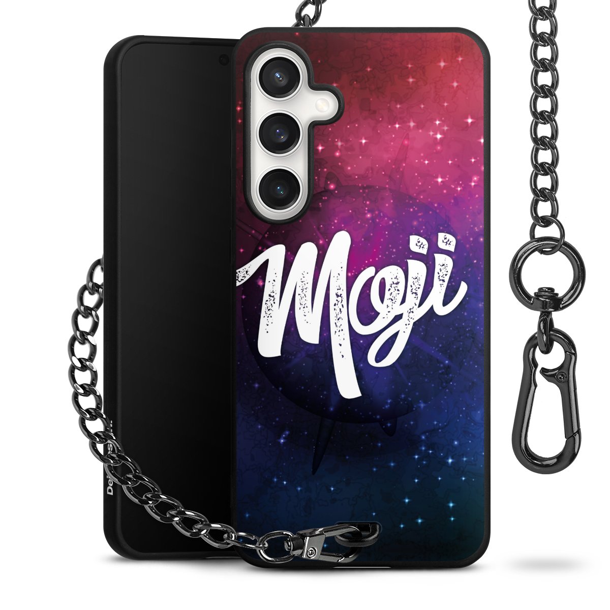 • Mattschwarze Handyhülle mit Metallkette