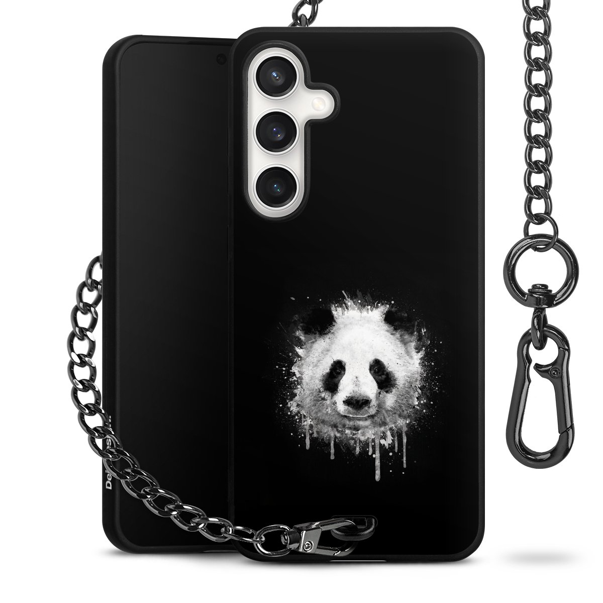 • Mattschwarze Handyhülle mit Metallkette