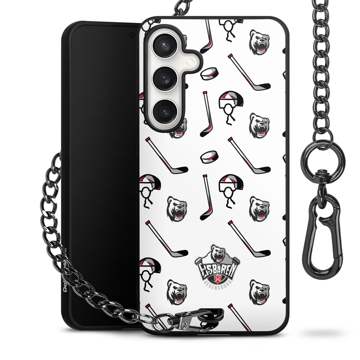 Die mattschwarze Silikon-Handyhülle besteht aus robustem TPU (thermoplastisches Polyurethan). Sie ist flexibel und schützt Dein Smartphone vor Stößen und Kratzern. Die Kette sowie der Karabinerhaken sind aus Metall in Gunmetal-Optik gefertigt. Für dieses Produkt kommen ausschließlich TÜV-geprüfte Materialien zum Einsatz.