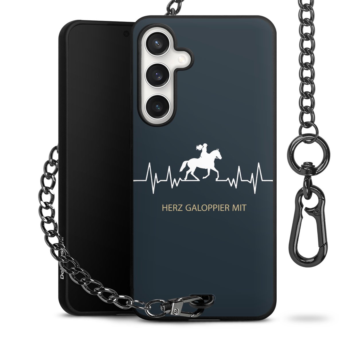- Mattschwarze Handyhülle mit Metallkette