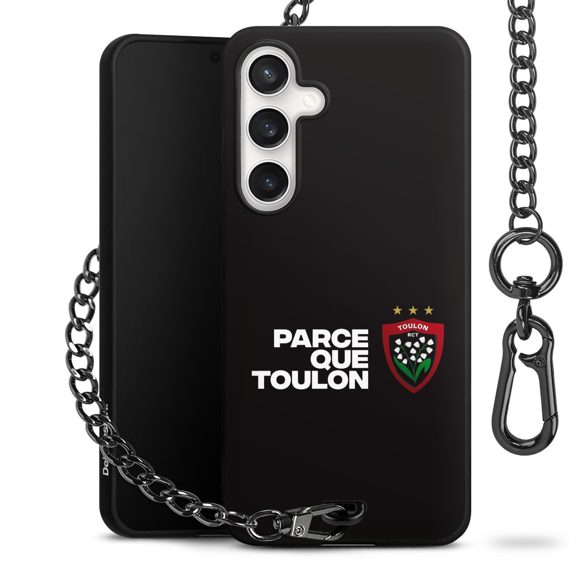 Die mattschwarze Silikon-Handyhülle besteht aus robustem TPU (thermoplastisches Polyurethan). Sie ist flexibel und schützt Dein Smartphone vor Stößen und Kratzern. Die Kette sowie der Karabinerhaken sind aus Metall in Gunmetal-Optik gefertigt. Für dieses Produkt kommen ausschließlich TÜV-geprüfte Materialien zum Einsatz.