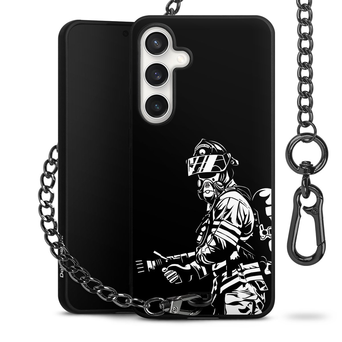 Die mattschwarze Silikon-Handyhülle besteht aus robustem TPU (thermoplastisches Polyurethan). Sie ist flexibel und schützt Dein Smartphone vor Stößen und Kratzern. Die Kette sowie der Karabinerhaken sind aus Metall in Gunmetal-Optik gefertigt. Für dieses Produkt kommen ausschließlich TÜV-geprüfte Materialien zum Einsatz.