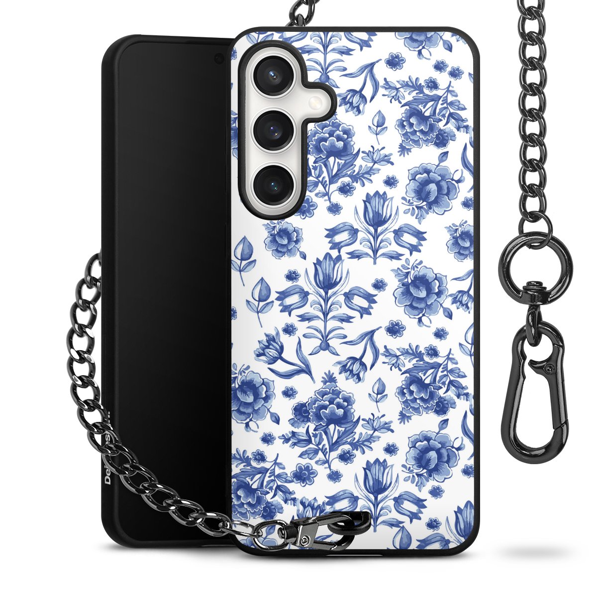 - Mattschwarze Handyhülle mit Metallkette