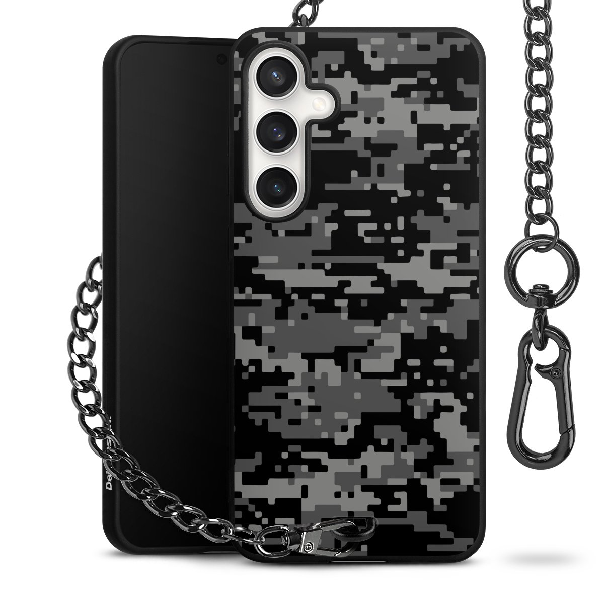 • Mattschwarze Handyhülle mit Metallkette