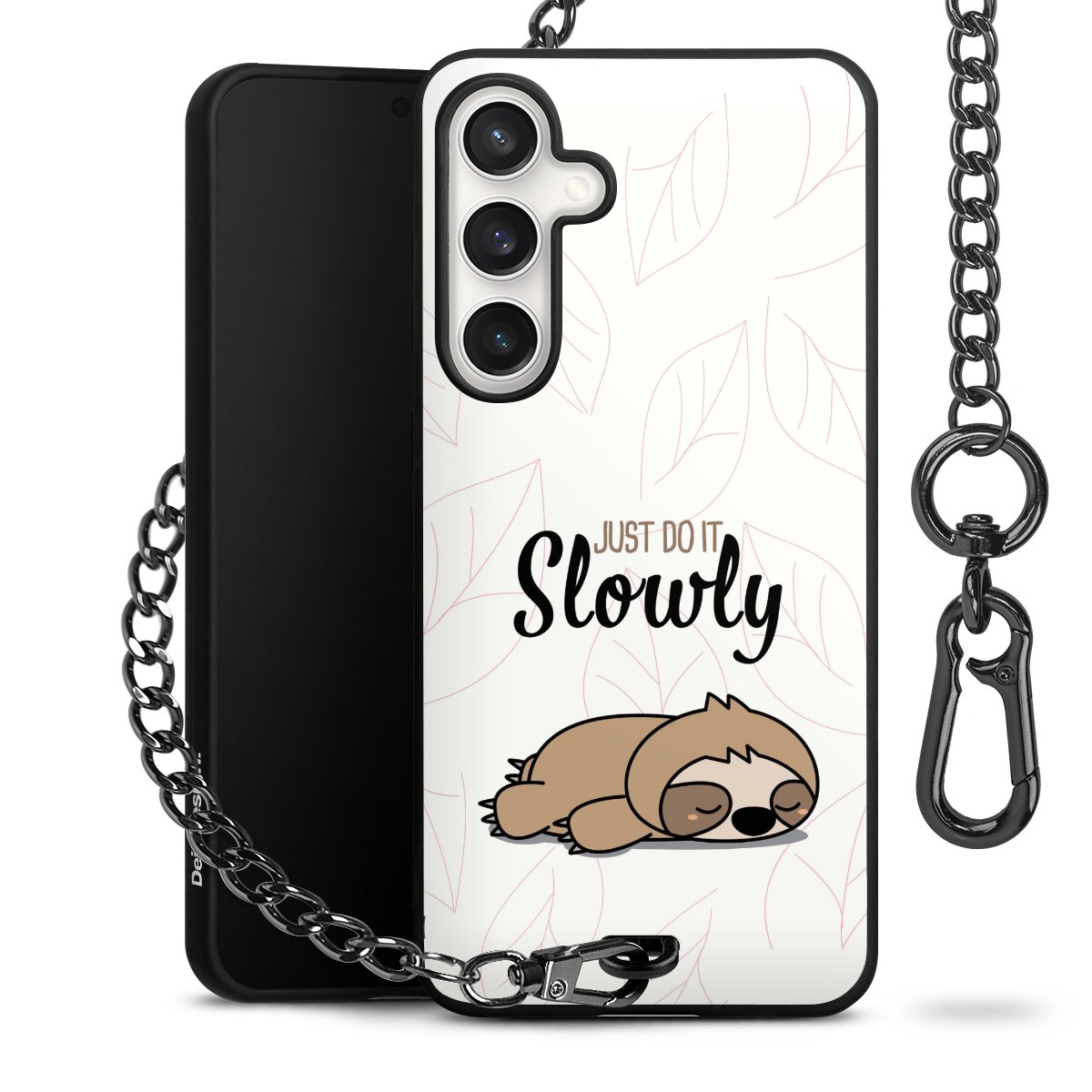 Die Handyhülle verfügt über eine mittig am unteren Rand platzierte Öse, an der die Metallkette stabil befestigt ist. Bestelle die Hülle einfach für Dein Smartphone-Modell, dann passt sie wie angegossen und Du brauchst sie bloß einmal anzudrücken. Handy in die Tasche, Karabiner an den Hosenbund – schon kann die Party starten.