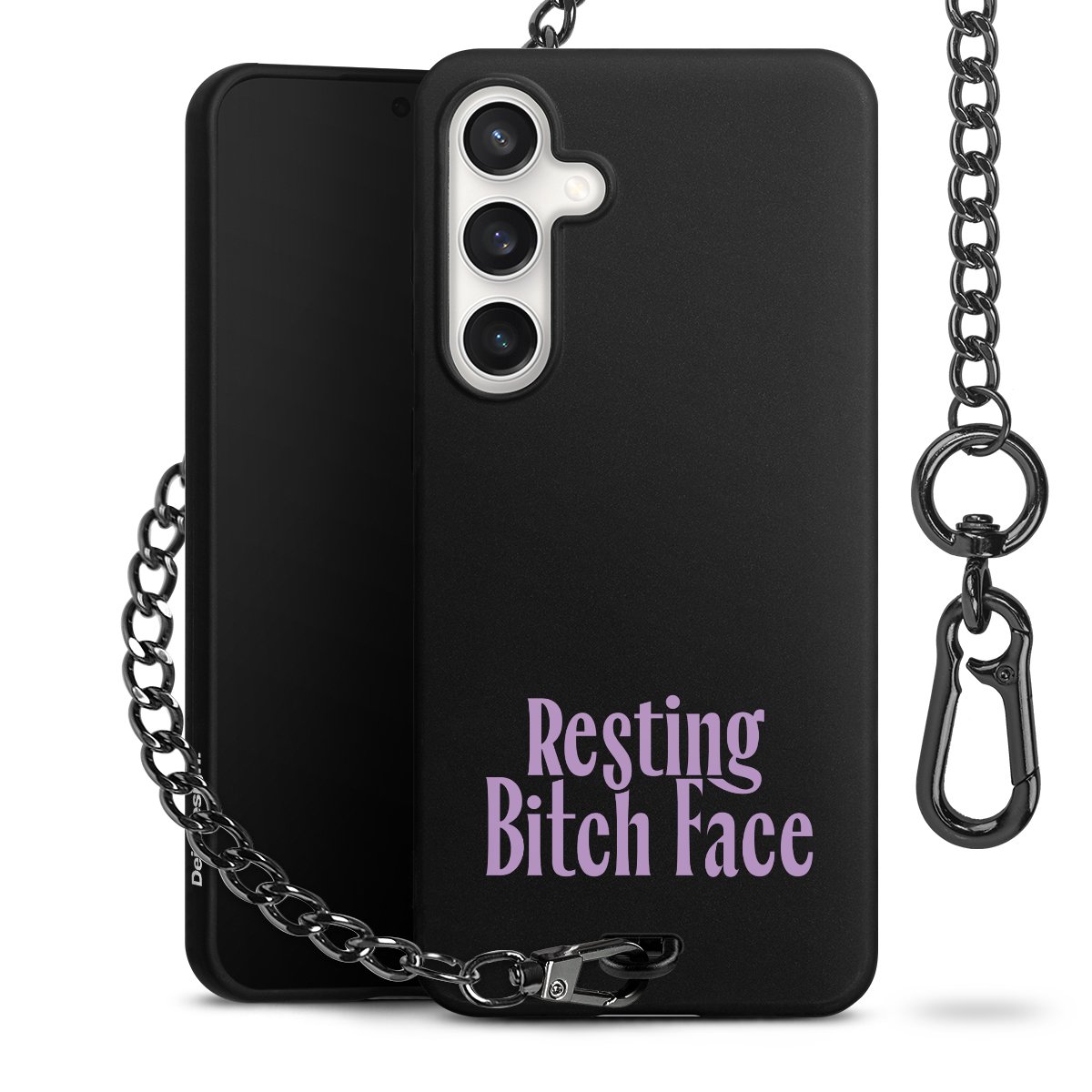 - Mattschwarze Handyhülle mit Metallkette