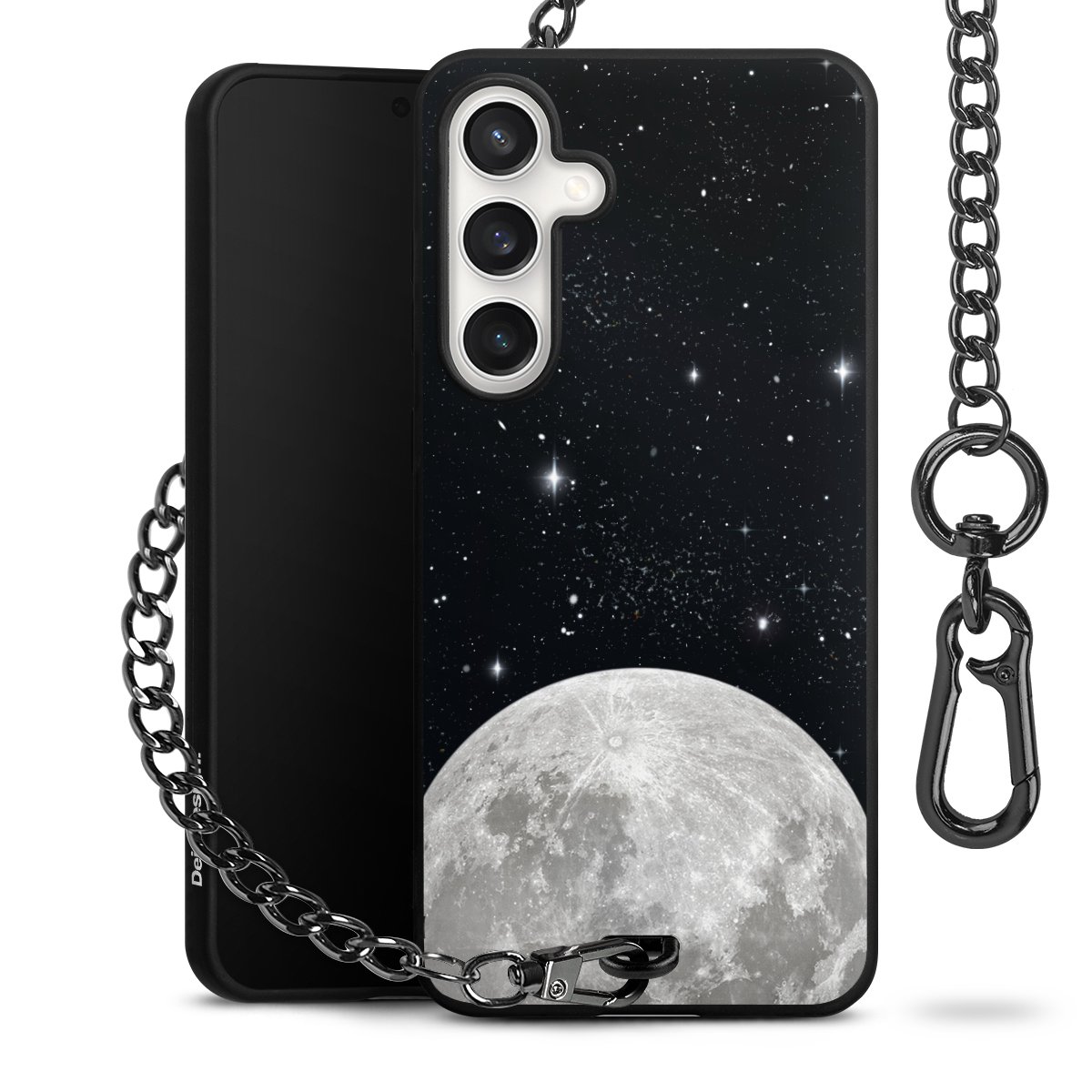 • Mattschwarze Handyhülle mit Metallkette