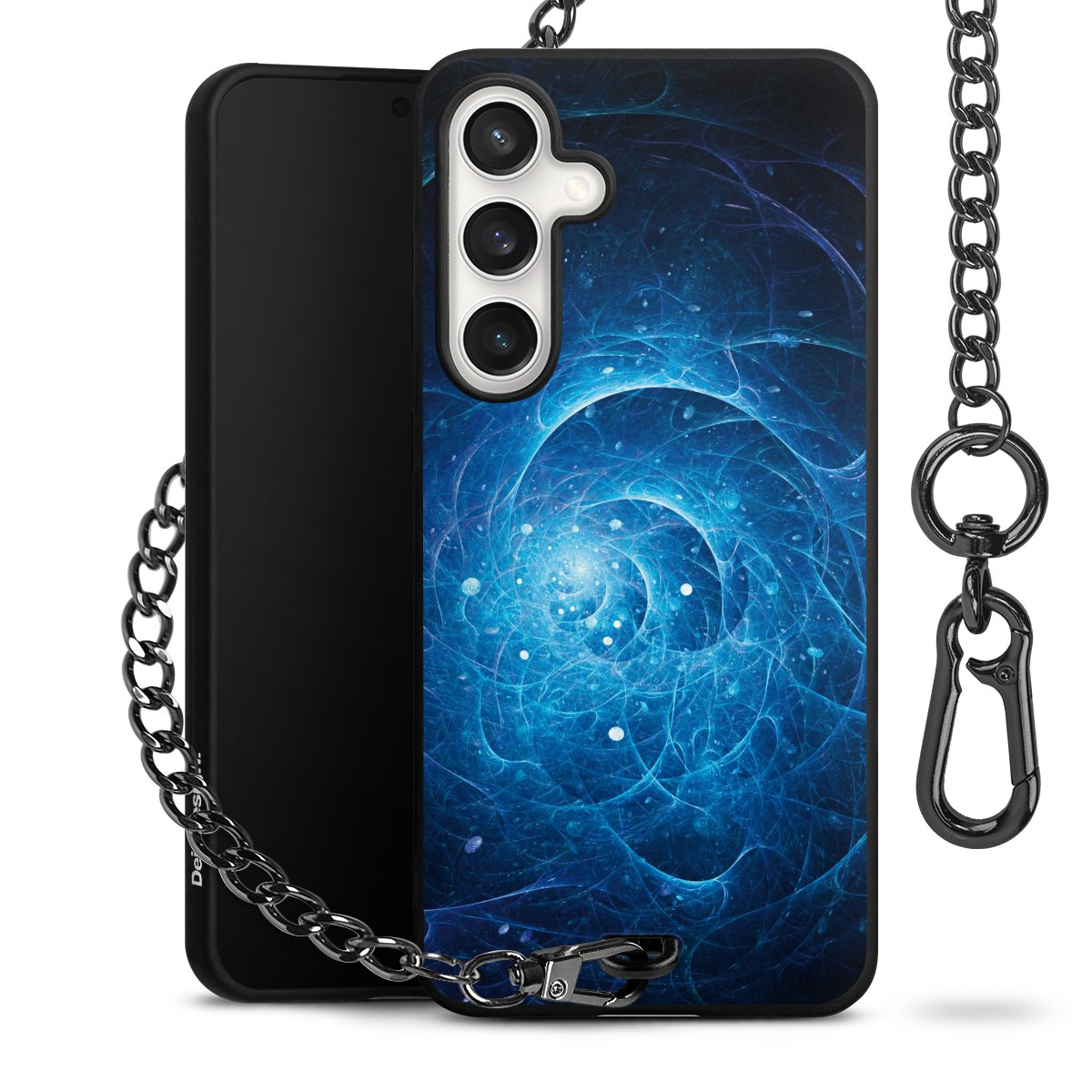 - Mattschwarze Handyhülle mit Metallkette
