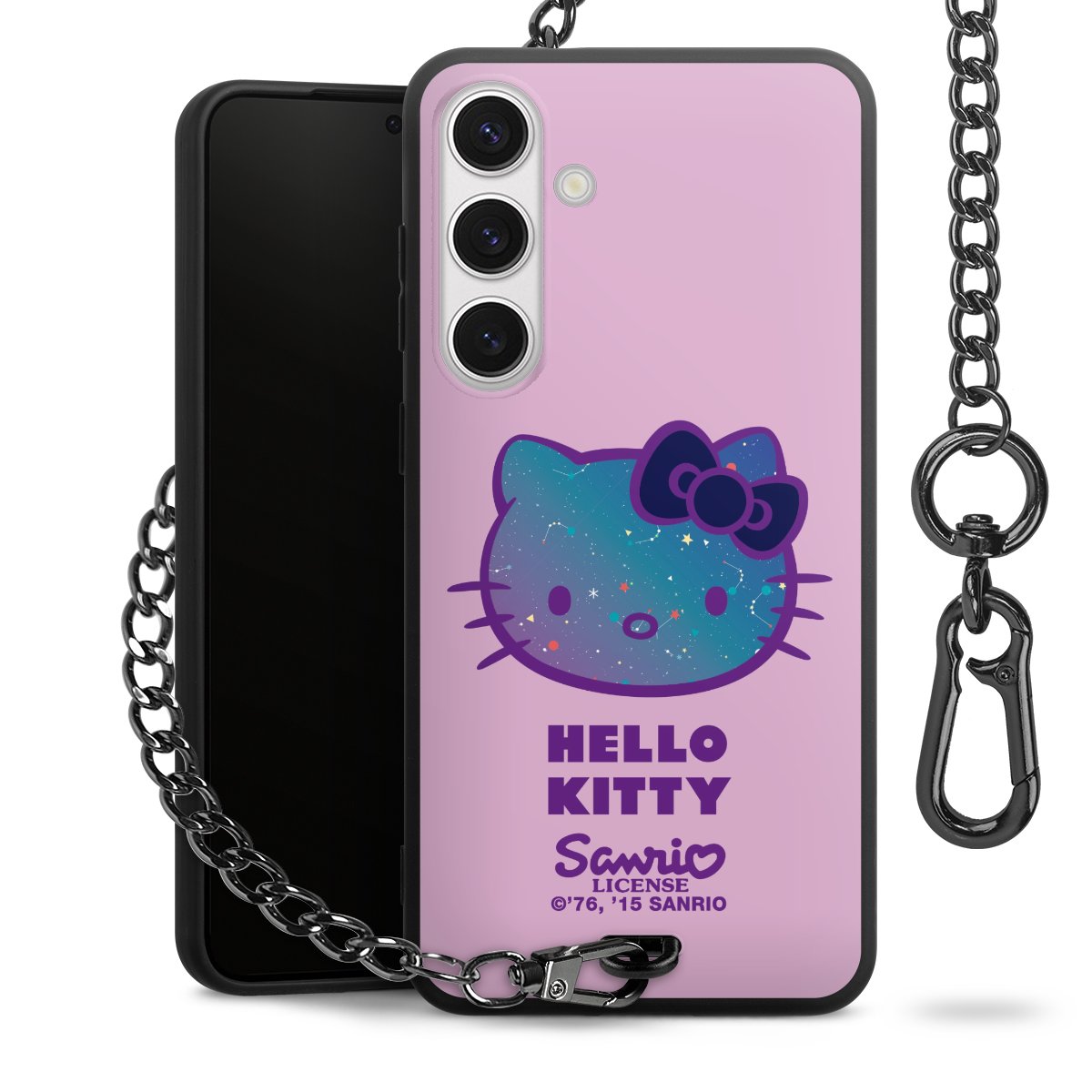 Die Handyhülle verfügt über eine mittig am unteren Rand platzierte Öse, an der die Metallkette stabil befestigt ist. Bestelle die Hülle einfach für Dein Smartphone-Modell, dann passt sie wie angegossen und Du brauchst sie bloß einmal anzudrücken. Handy in die Tasche, Karabiner an den Hosenbund – schon kann die Party starten.