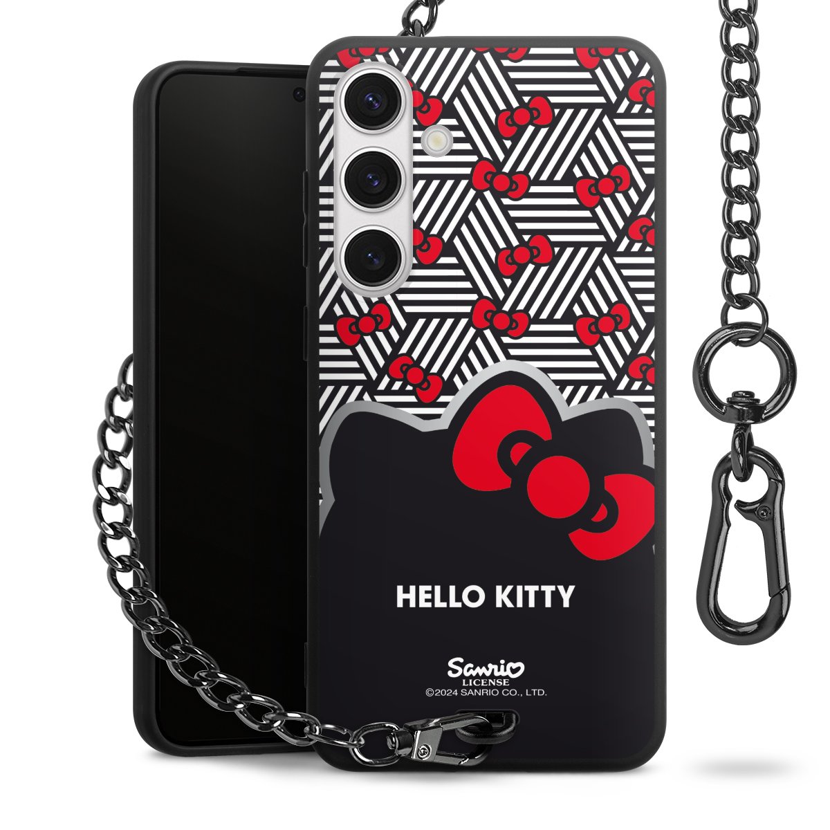 Die mattschwarze Silikon-Handyhülle besteht aus robustem TPU (thermoplastisches Polyurethan). Sie ist flexibel und schützt Dein Smartphone vor Stößen und Kratzern. Die Kette sowie der Karabinerhaken sind aus Metall in Gunmetal-Optik gefertigt. Für dieses Produkt kommen ausschließlich TÜV-geprüfte Materialien zum Einsatz.