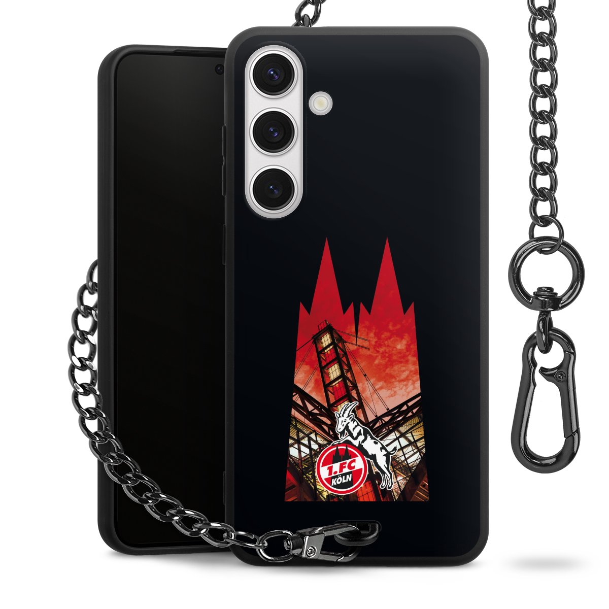 - Mattschwarze Handyhülle mit Metallkette
