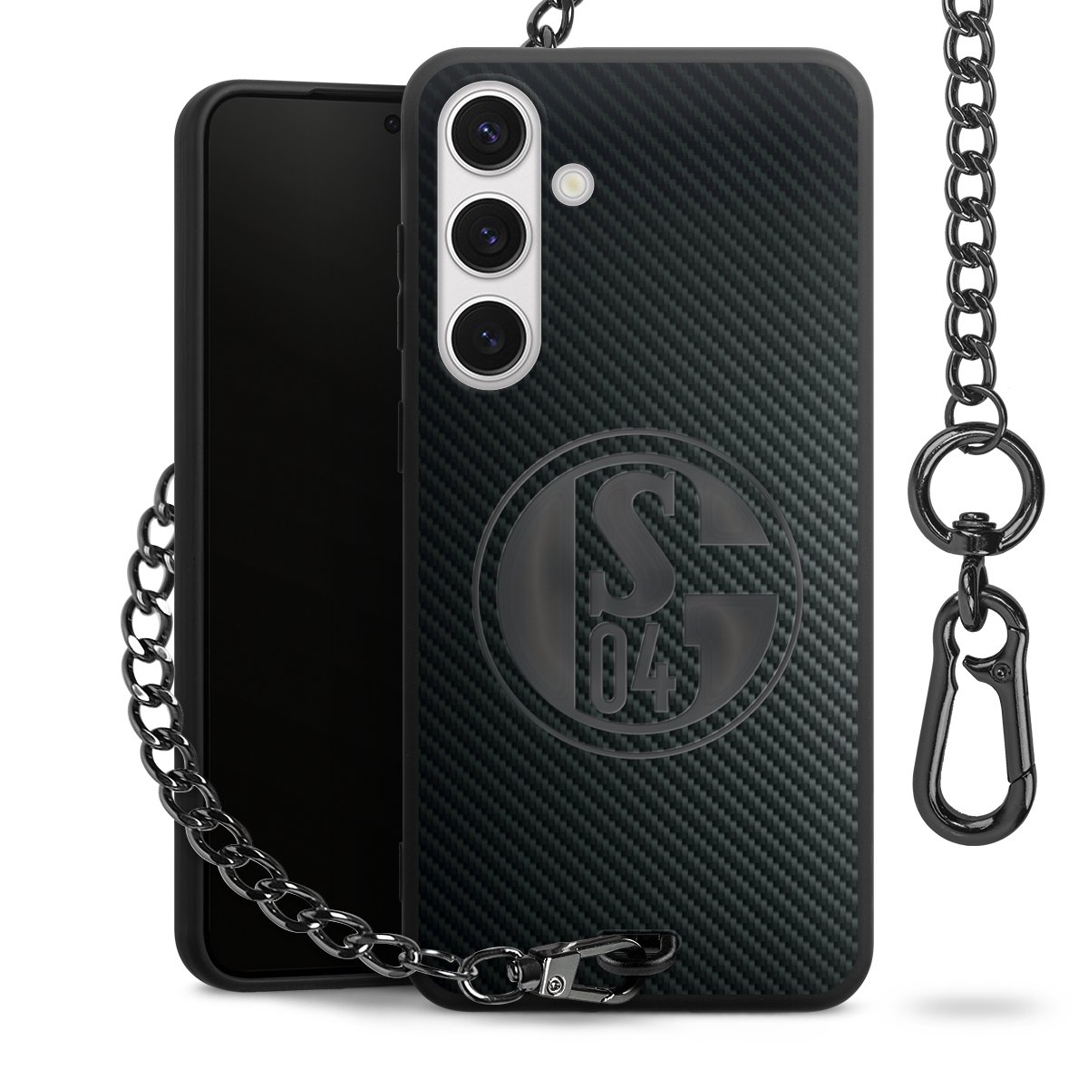 • Mattschwarze Handyhülle mit Metallkette