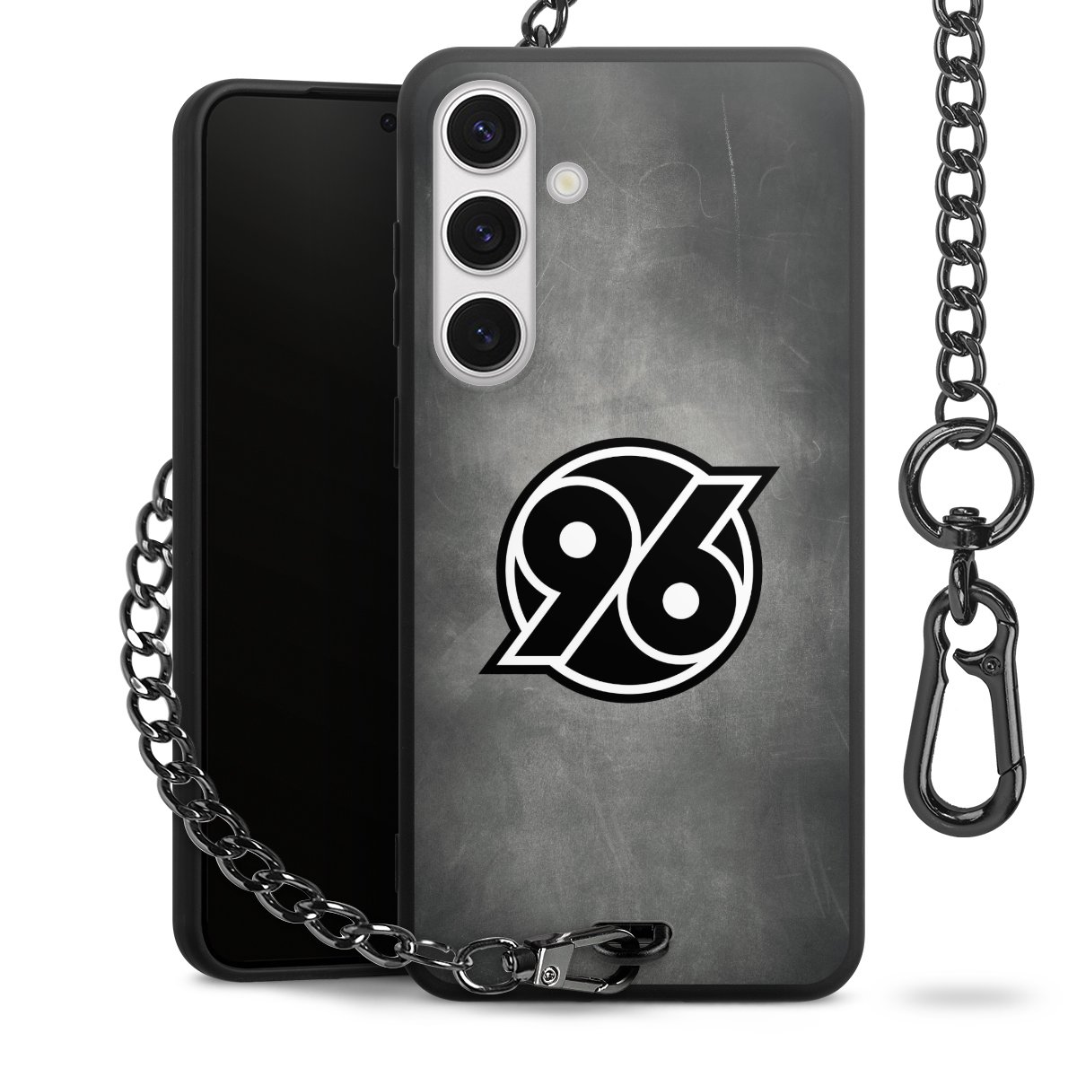 Die mattschwarze Silikon-Handyhülle besteht aus robustem TPU (thermoplastisches Polyurethan). Sie ist flexibel und schützt Dein Smartphone vor Stößen und Kratzern. Die Kette sowie der Karabinerhaken sind aus Metall in Gunmetal-Optik gefertigt. Für dieses Produkt kommen ausschließlich TÜV-geprüfte Materialien zum Einsatz.