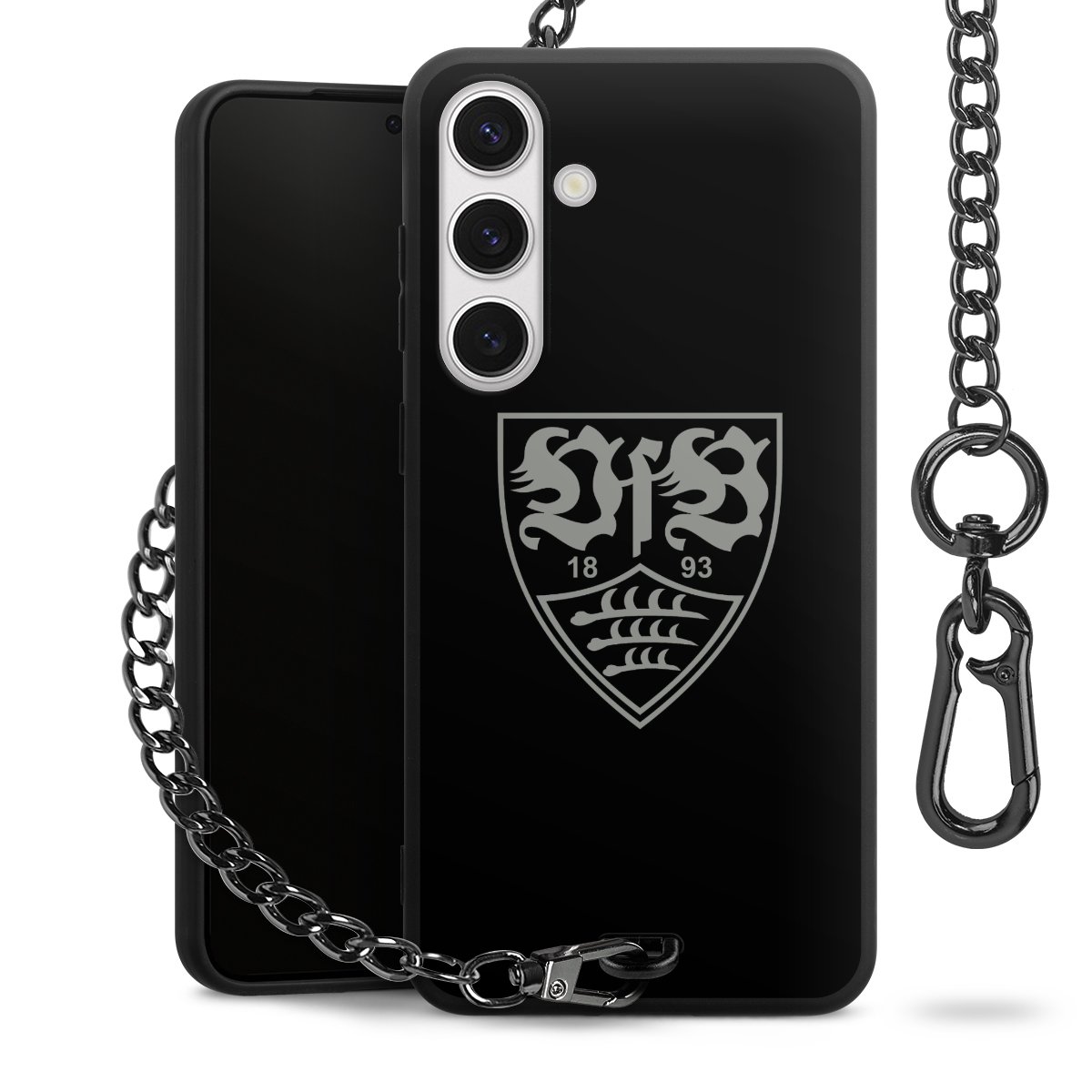 • Mattschwarze Handyhülle mit Metallkette
