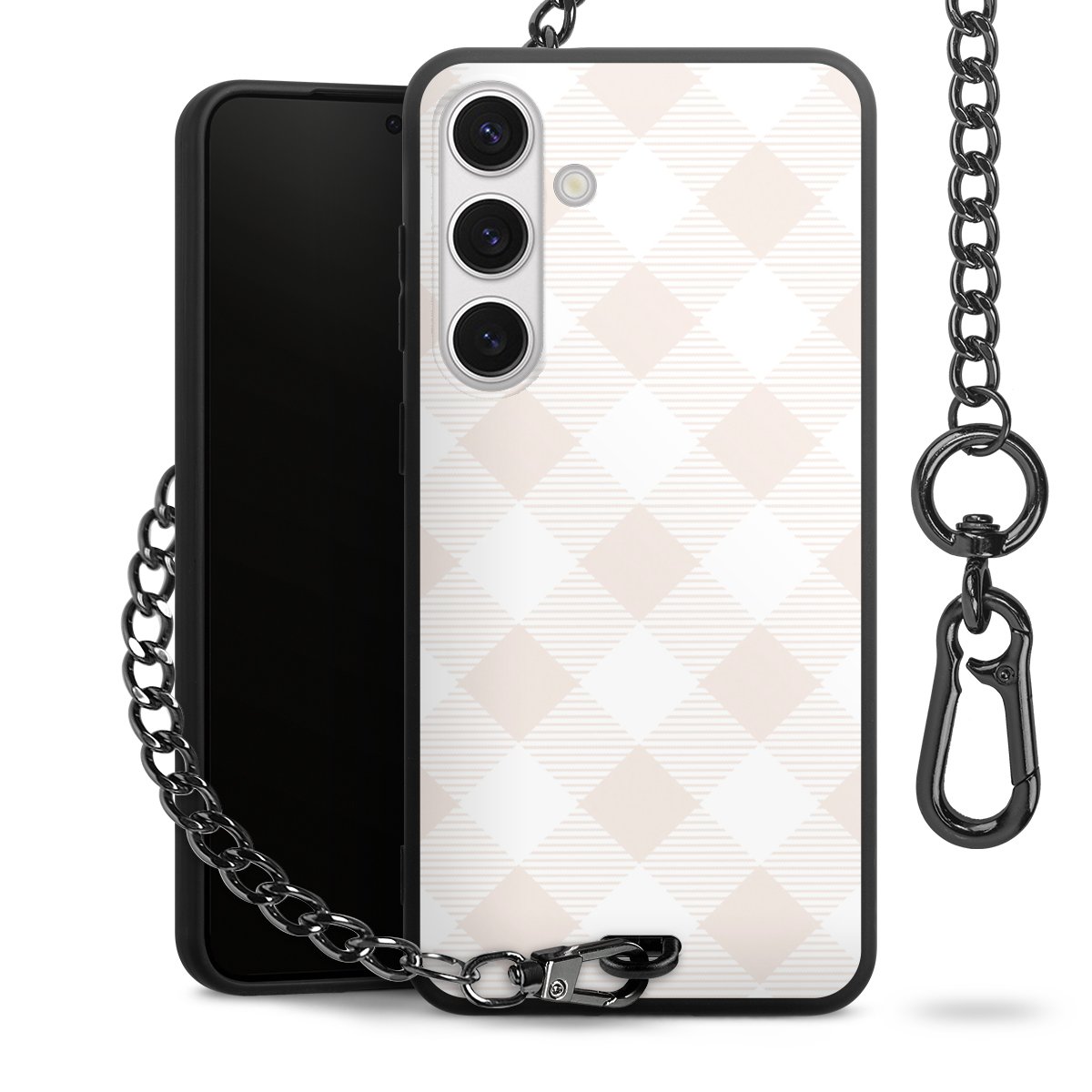 • Mattschwarze Handyhülle mit Metallkette