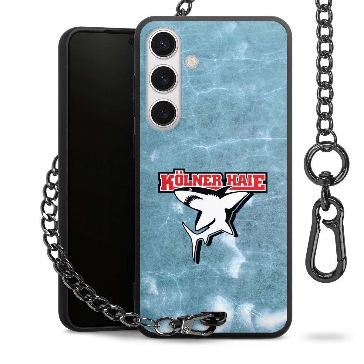 • Mattschwarze Handyhülle mit Metallkette