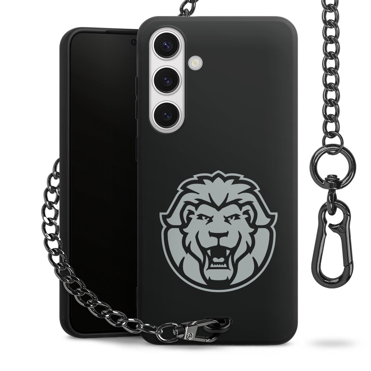 - Mattschwarze Handyhülle mit Metallkette