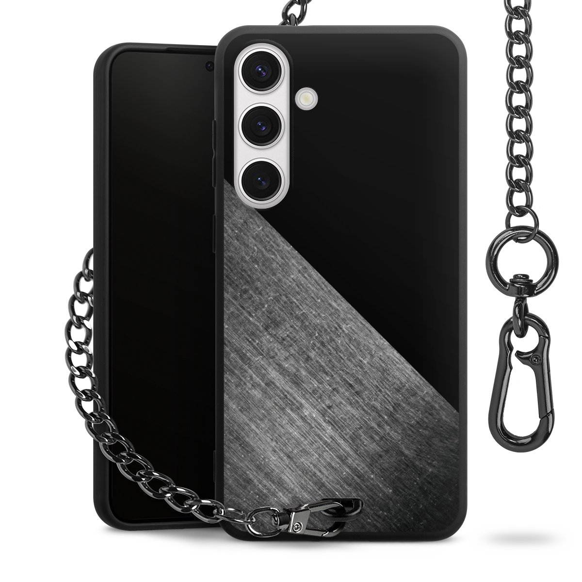 - Mattschwarze Handyhülle mit Metallkette