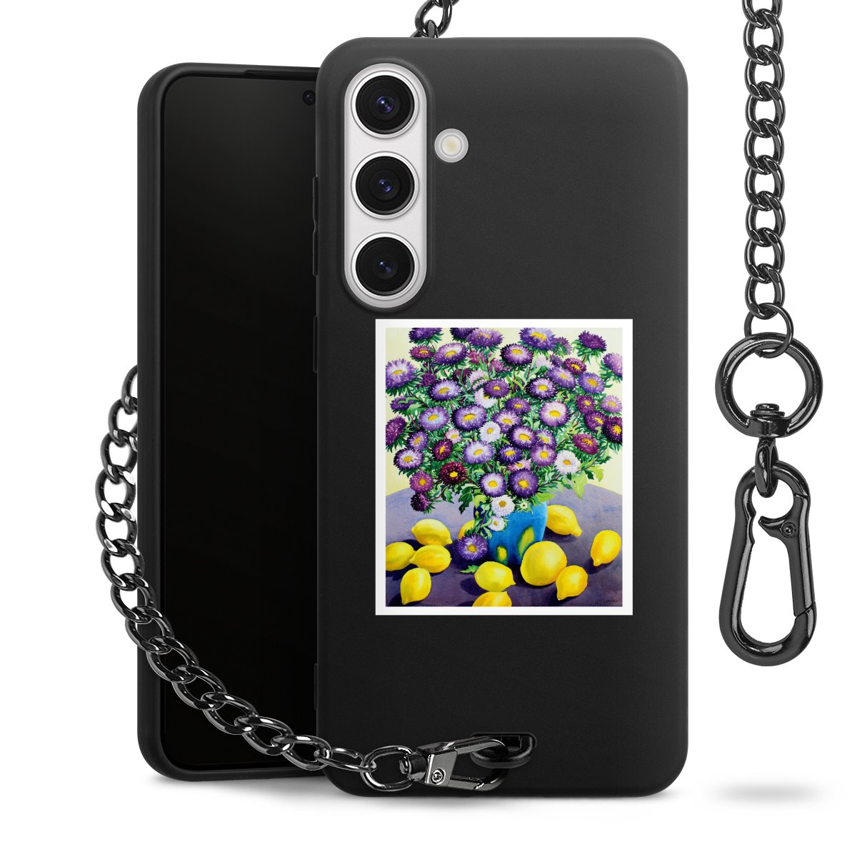 - Mattschwarze Handyhülle mit Metallkette
