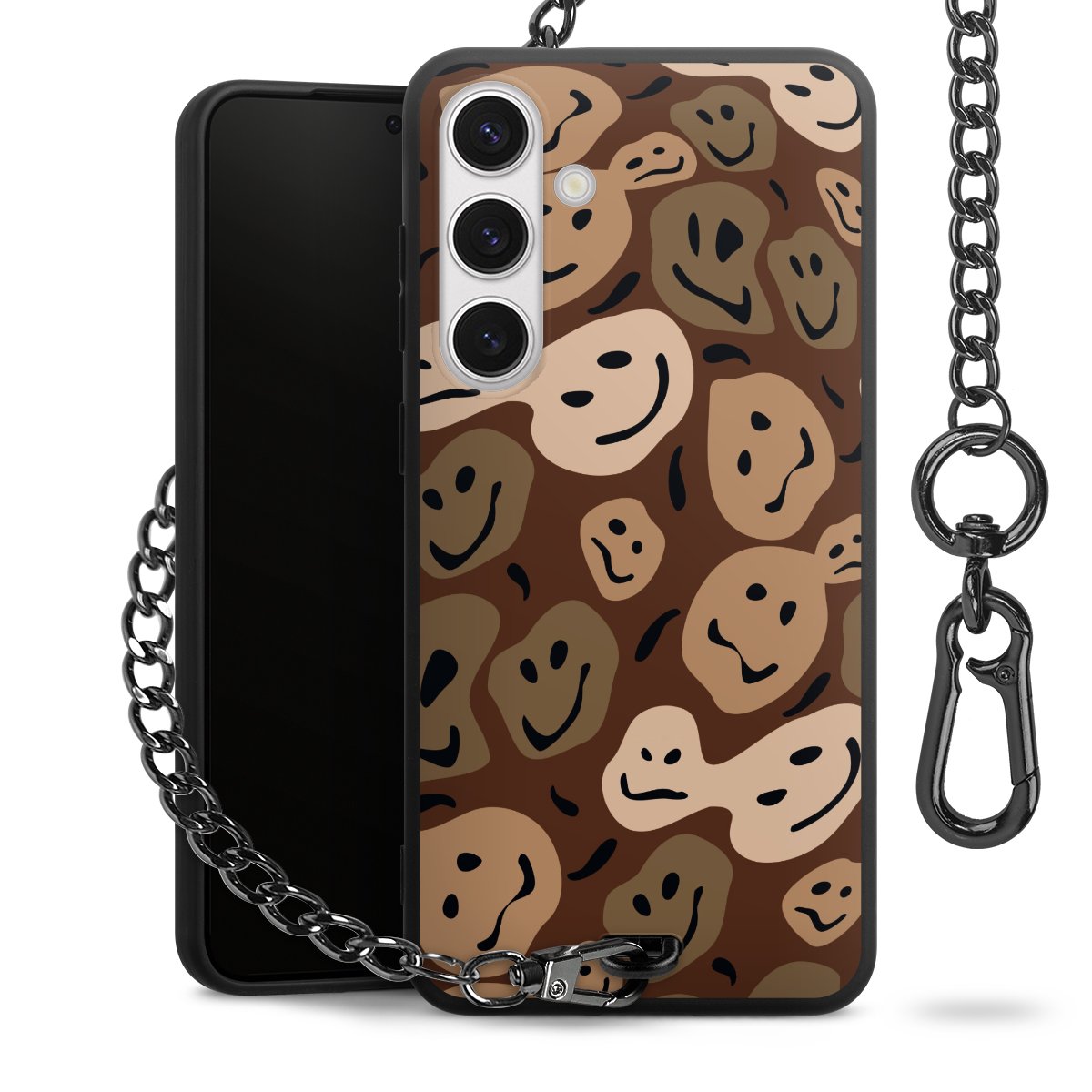 - Mattschwarze Handyhülle mit Metallkette