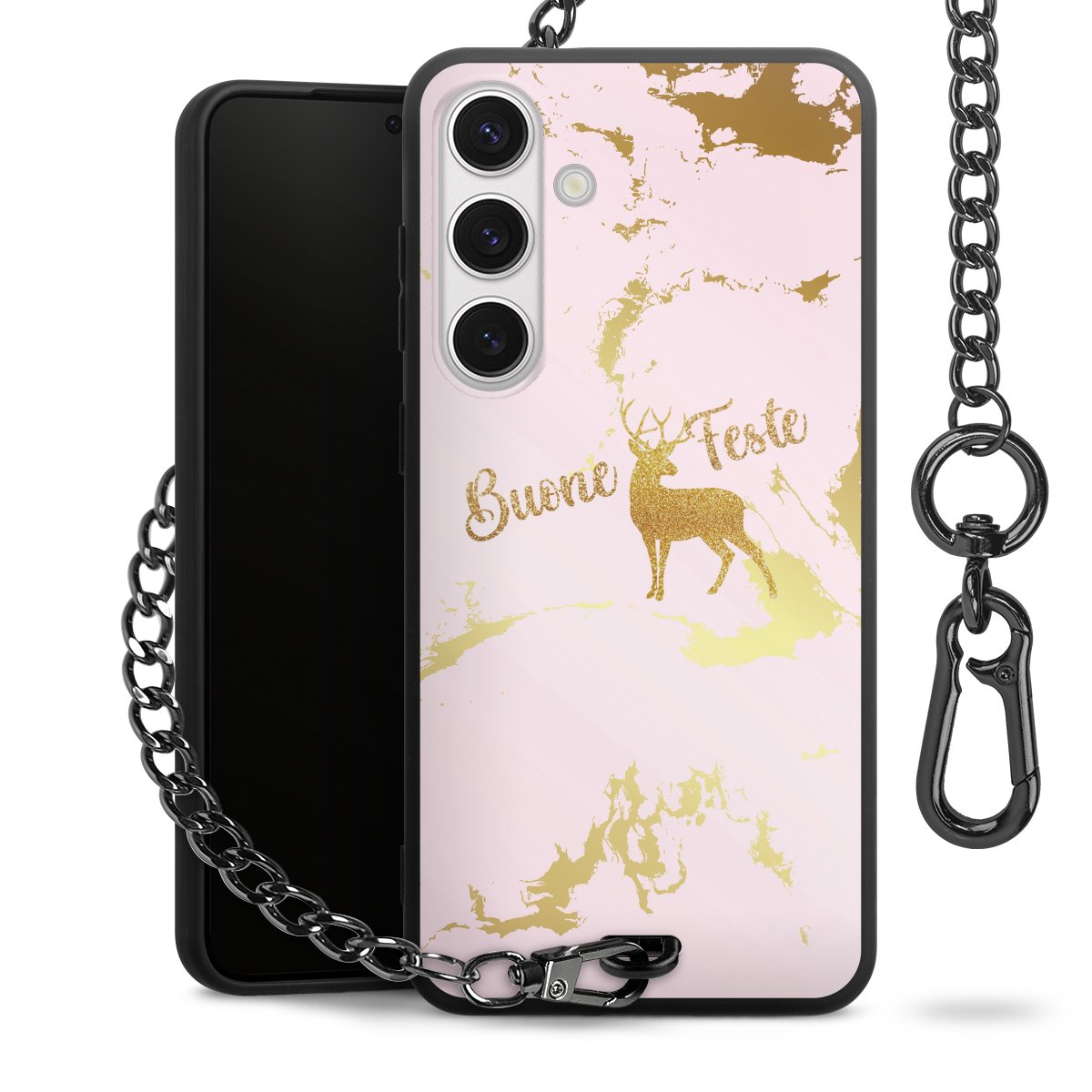 - Mattschwarze Handyhülle mit Metallkette