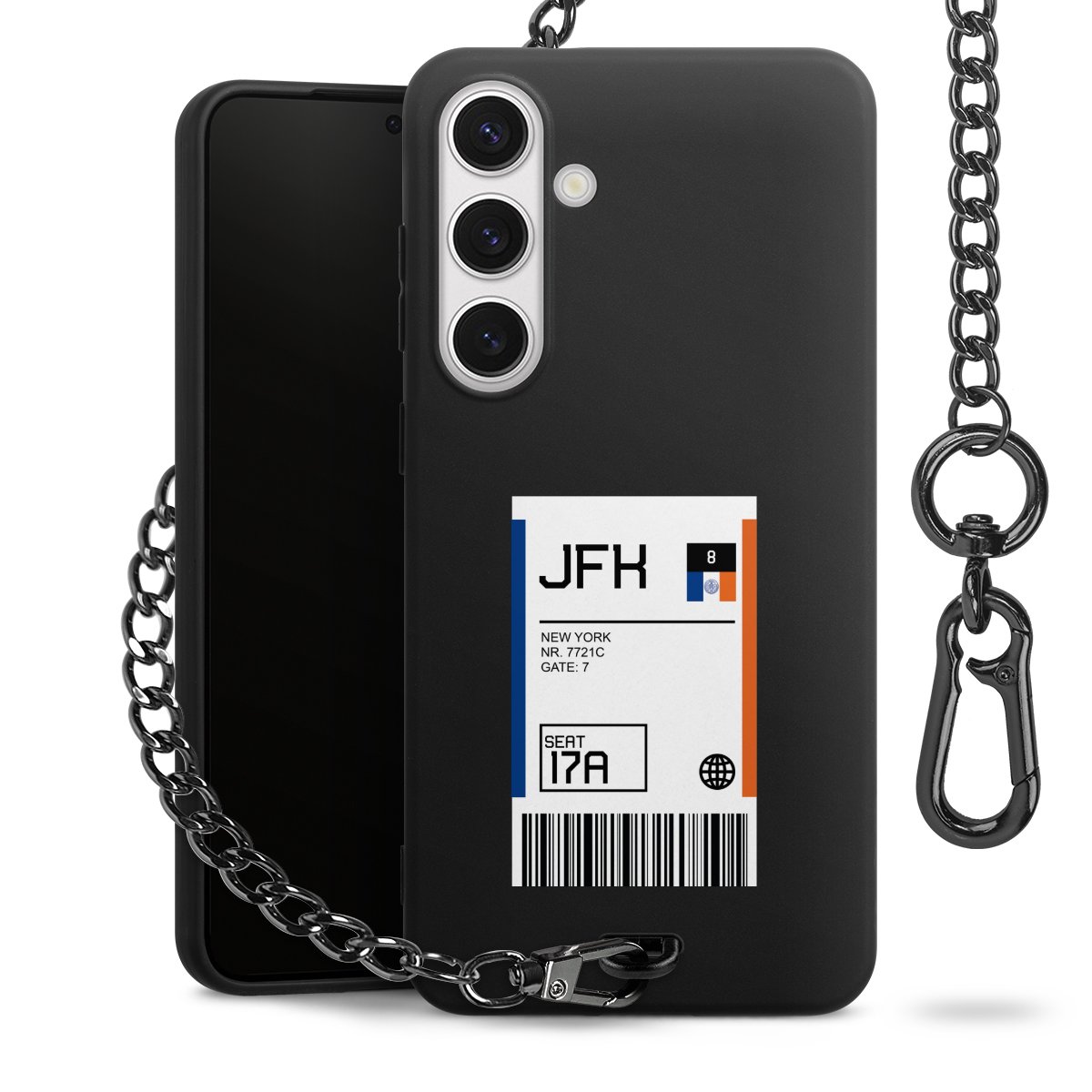 - Mattschwarze Handyhülle mit Metallkette