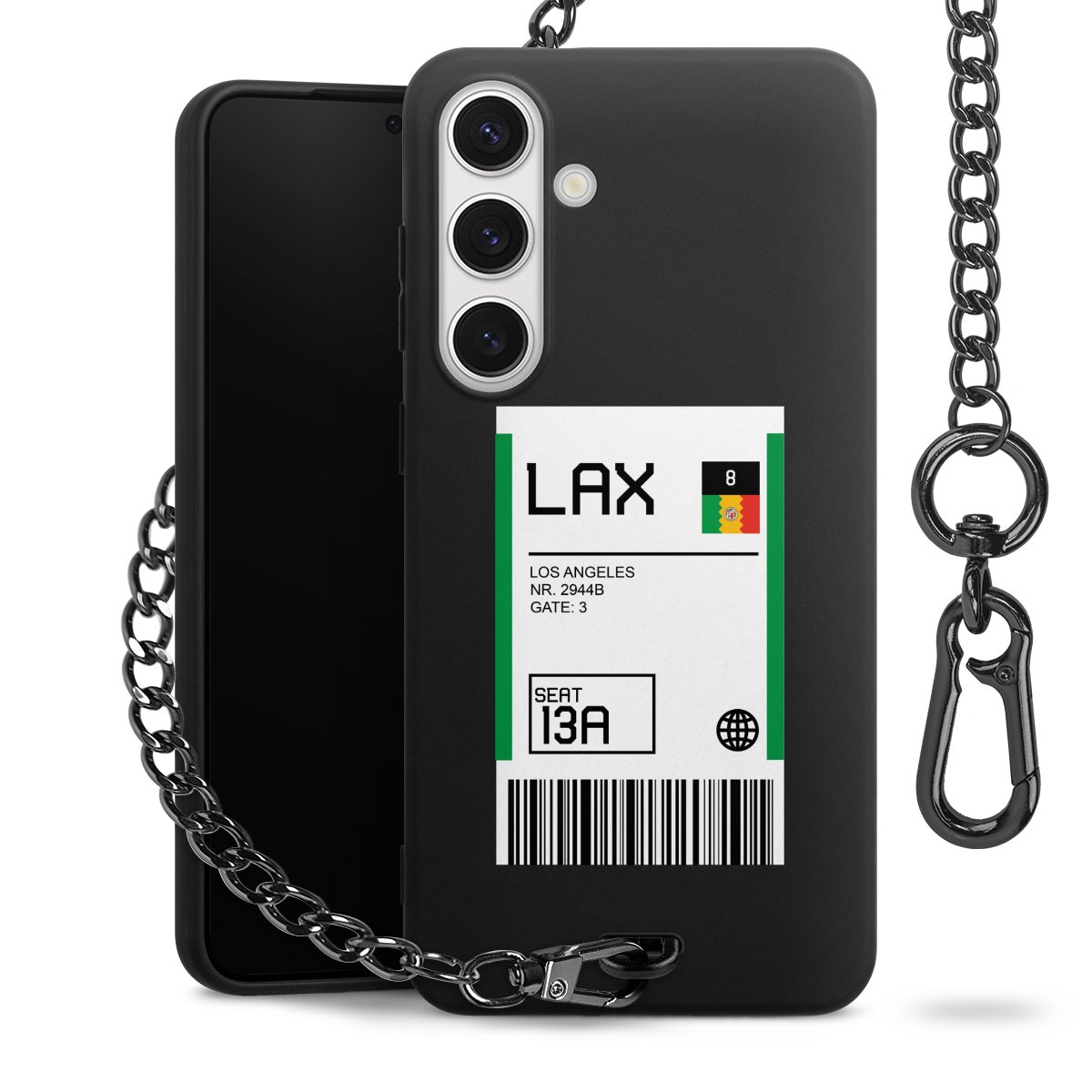 • Mattschwarze Handyhülle mit Metallkette